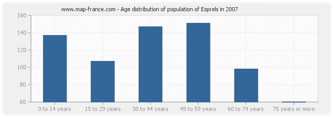 - Population of Esprels from 45 to 59 years : 151 inhabitants