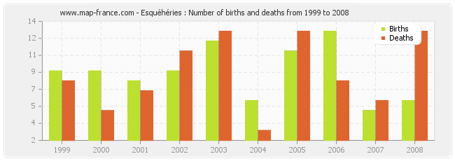 - Esquéhéries in 2008 : 6 births and 13 deaths