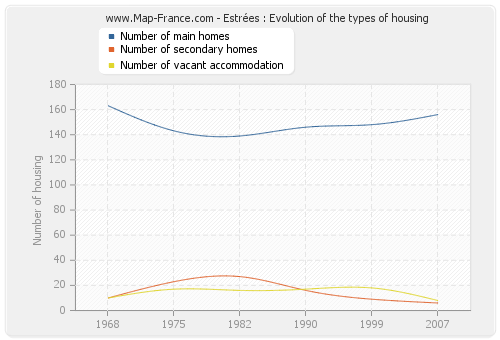 - Number of main homes of Estrées in 2007 : 156