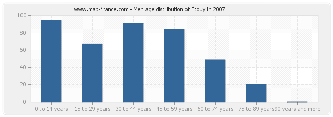 - Men inhabitants Étouy in 2007 were 404 - Women inhabitants in 2007 were 389
