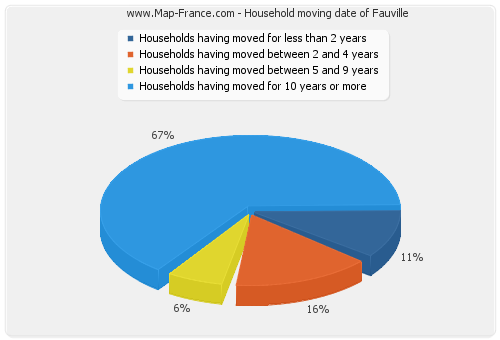 - Number of households of Fauville having moved between 2 and 5 years : 17 - Number of households of Fauville having moved between 5 and 9 years : 7 - Number of households of Fauville having moved for 10 years or more : 73 |