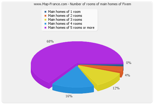 - Number of main homes of Fixem of 1 room : 0 - Number of main homes of Fixem of 2 rooms : 5 - Number of main homes of Fixem of 3 rooms : 17 - Number of main homes of Fixem of 4 rooms : 17 - Number of main homes of Fixem of 5 rooms and more : 95 |