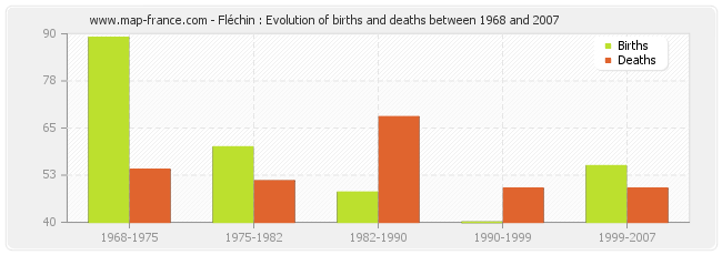 Fléchin : evolution of births and deaths from 1968 to 2007