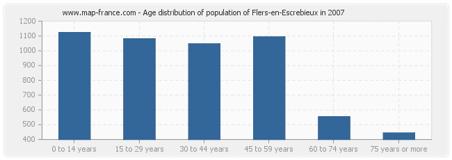 Distribution of the population of Flers-en-Escrebieux by age in 2007 :