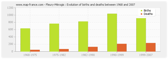 Fleury-Mérogis : evolution of births and deaths from 1968 to 2007