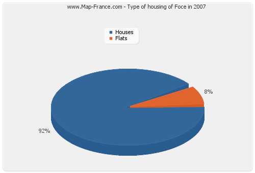 The number of housing of Foce was 102 in 2007, 90 in 1999, 81 in 1990, 94 in 1982, 58 in 1975 and 55 in 1968.