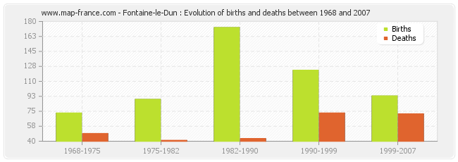 Fontaine-le-Dun : evolution of births and deaths from 1968 to 2007