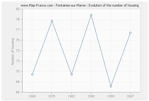 The number of housing of Fontaines-sur-Marne was 76 in 2007, 67 in 1999, 79 in 1990, 69 in 1982, 78 in 1975 and 69 in 1968.