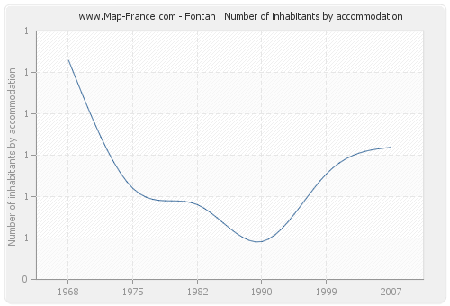 The number of inhabitants of Fontan per housing was 0,72 in 2007.