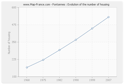 The number of housing of Fontannes was 531 in 2007, 449 in 1999, 367 in 1990, 293 in 1982, 222 in 1975 and 167 in 1968.