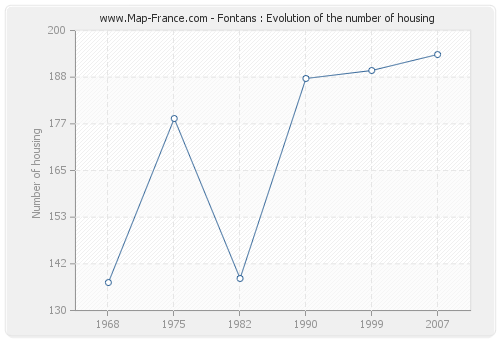 The number of housing of Fontans was 194 in 2007, 190 in 1999, 188 in 1990, 138 in 1982, 178 in 1975 and 137 in 1968.