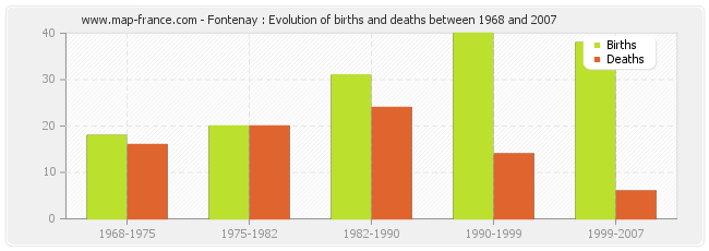 Population of Fontenay was 316 inhabitants in 2007, 266 inhabitants in 1999, 234 inhabitants in 1990, 225 inhabitants in 1982, 200 inhabitants in 1975 and 225 inhabitants in 1968.
