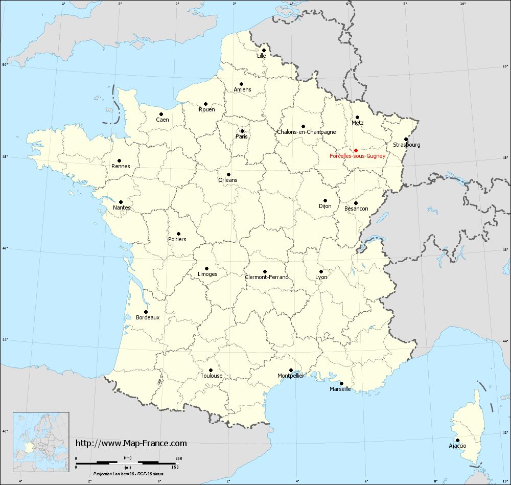 Map of Forcelles-sous-Gugney with regions and prefectures