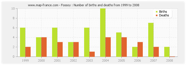 Fossoy : evolution of births and deaths from 1968 to 2007