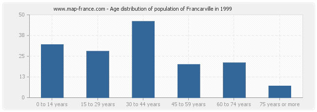 - Population of Francarville from 30 to 44 years : 46 inhabitants