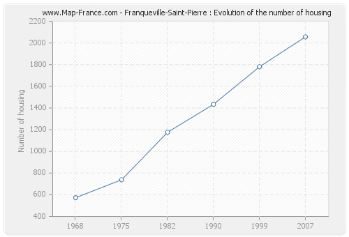 The number of housing of Franqueville-Saint-Pierre was 2 056 in 2007, 1 780 in 1999, 1 434 in 1990, 1 176 in 1982, 738 in 1975 and 573 in 1968.