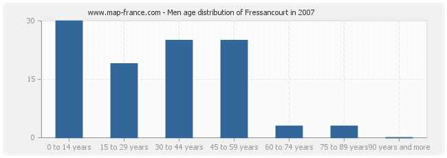 - Fressancourt men inhabitants from 30 to 44 years : 25