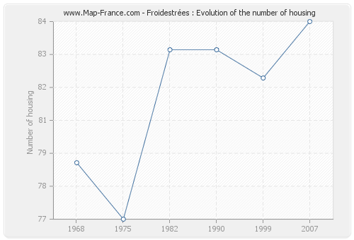 The number of housing of Froidestrées was 84 in 2007, 82 in 1999, 83 in 1990, 83 in 1982, 77 in 1975 and 79 in 1968.