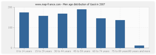 - Men inhabitants Gacé in 2007 were 981 - Women inhabitants in 2007 were 1 129