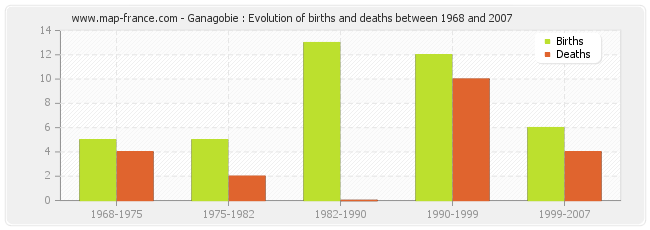 Ganagobie : evolution of births and deaths from 1968 to 2007