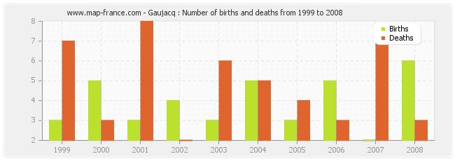 - Gaujacq in 2008 : 6 births and 3 deaths