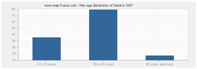 - Men inhabitants Gémil in 2007 were 136 - Women inhabitants in 2007 were 133