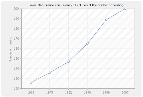 The number of housing of Genay was 200 in 2007, 189 in 1999, 165 in 1990, 147 in 1982, 136 in 1975 and 126 in 1968.