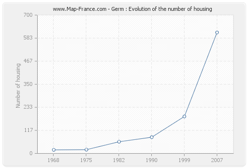 The number of housing of Germ was 612 in 2007, 187 in 1999, 82 in 1990, 59 in 1982, 19 in 1975 and 18 in 1968.