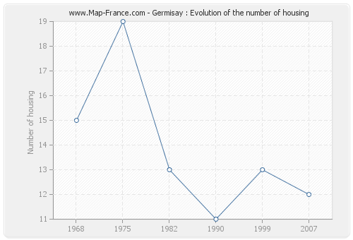 The number of housing of Germisay was 12 in 2007, 13 in 1999, 11 in 1990, 13 in 1982, 19 in 1975 and 15 in 1968.