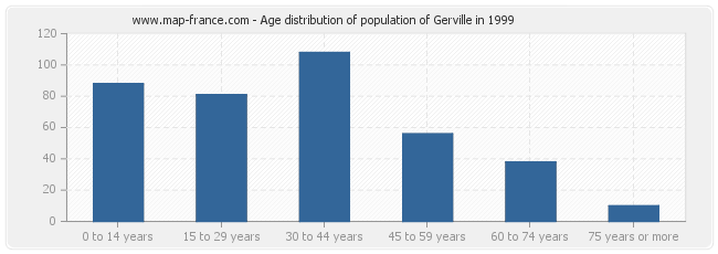 - Population of Gerville from 30 to 44 years : 108 inhabitants