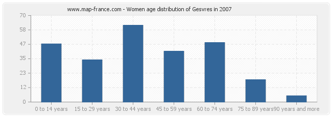 - Gesvres women inhabitants from 30 to 44 years : 62