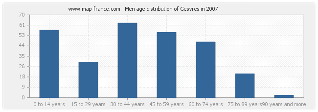 - Gesvres men inhabitants from 30 to 44 years : 63