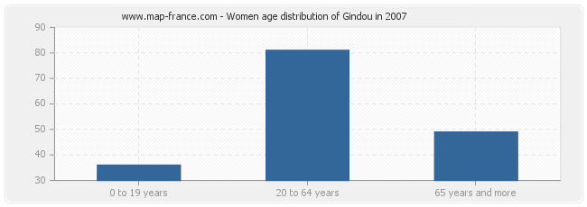 - Gindou women inhabitants of 65 years and more : 49
