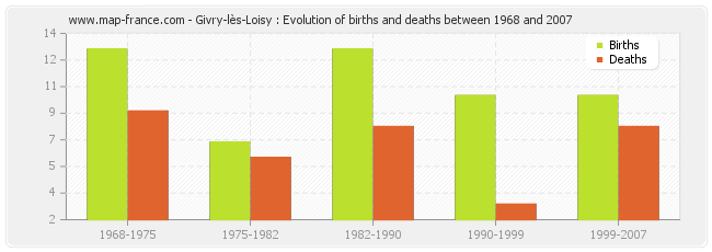 Givry-lès-Loisy : evolution of births and deaths from 1968 to 2007