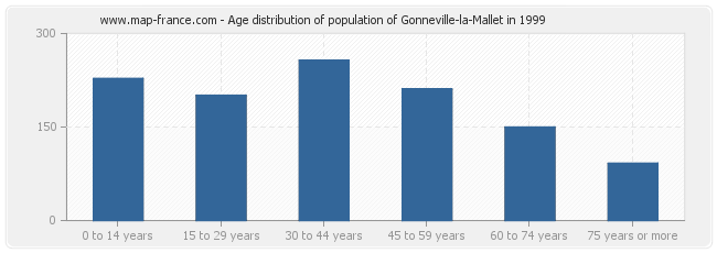 Distribution of the population of Gonneville-la-Mallet by age in 1999 :
