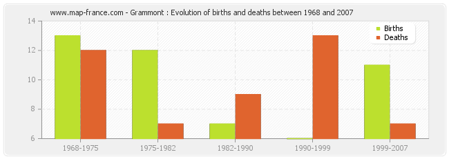 Population of Grammont was 74 inhabitants in 2007, 71 inhabitants in 1999, 74 inhabitants in 1990, 84 inhabitants in 1982, 78 inhabitants in 1975 and 96 inhabitants in 1968.