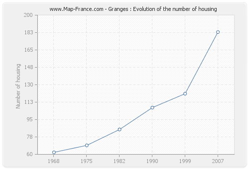 The number of housing of Granges was 183 in 2007, 121 in 1999, 107 in 1990, 85 in 1982, 69 in 1975 and 62 in 1968.