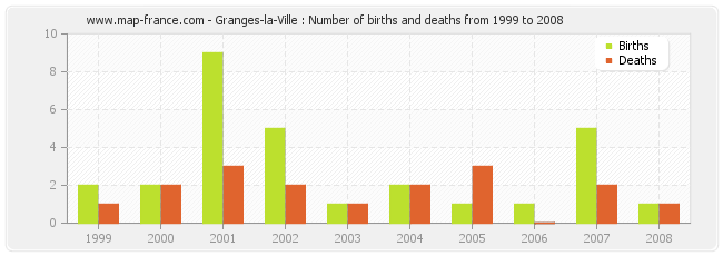 Granges-la-Ville : births and deaths from 1999 to 2008