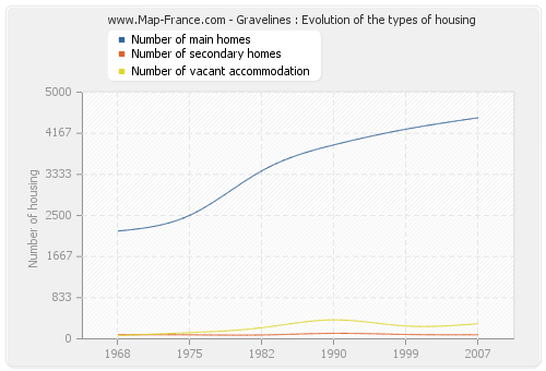 The number of housing of Gravelines was 4 869 in 2007, 4 598 in 1999, 4 428 in 1990, 3 713 in 1982, 2 716 in 1975 and 2 332 in 1968.