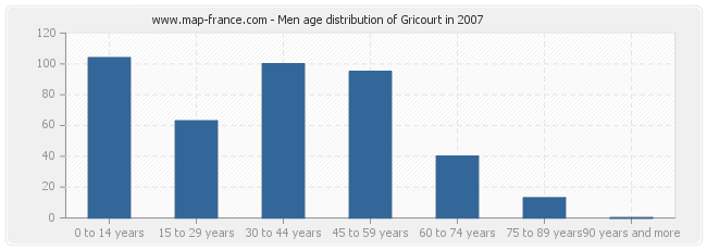 - Gricourt men inhabitants from 0 to 14 years : 104