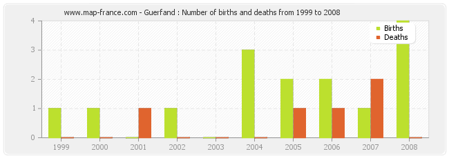 - Guerfand in 2008 : 4 births and 0 deaths