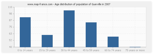 - Population of Guerville from 30 to 44 years : 80 inhabitants
