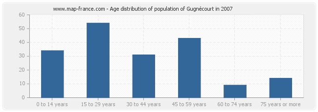 - Population of Gugnécourt from 15 to 29 years : 54 inhabitants