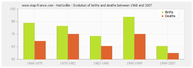 Hartzviller : evolution of births and deaths from 1968 to 2007