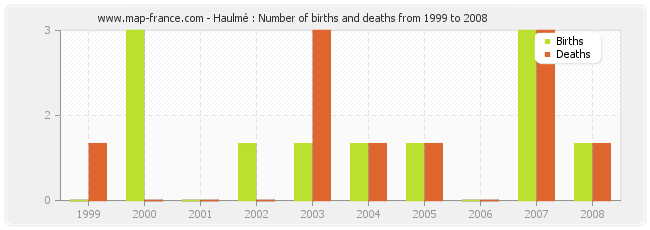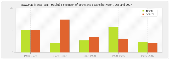 Haulmé : evolution of births and deaths from 1968 to 2007