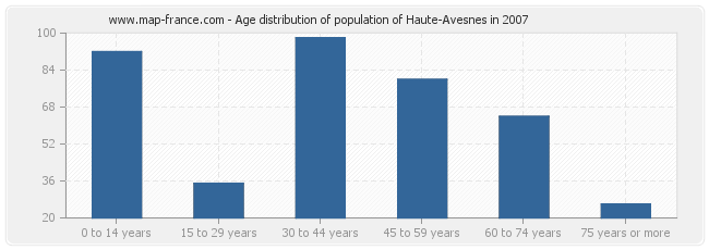 Distribution of the population of Haute-Avesnes by age in 2007 :