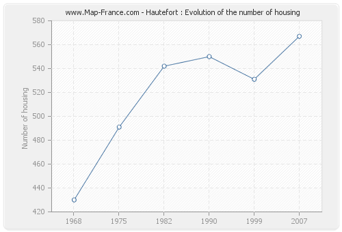 The number of housing of Hautefort was 567 in 2007, 531 in 1999, 550 in 1990, 542 in 1982, 491 in 1975 and 430 in 1968.
