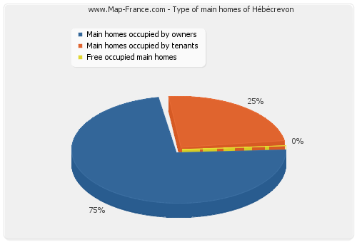- Number of main homes of Hébécrevon occupied by owners : 312 - Number of main homes of Hébécrevon occupied by tenants : 103 - Number of main homes of Hébécrevon occupied free of charge : 0 |