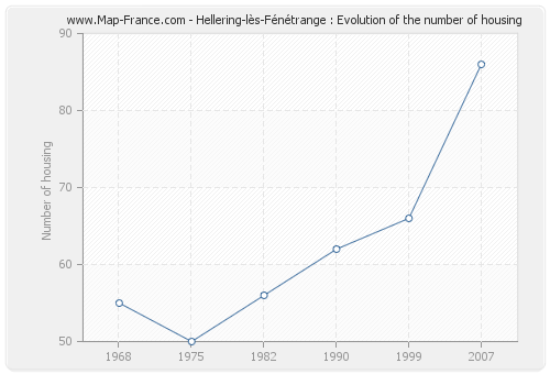 The number of housing of Hellering-lès-Fénétrange was 86 in 2007, 66 in 1999, 62 in 1990, 56 in 1982, 50 in 1975 and 55 in 1968.