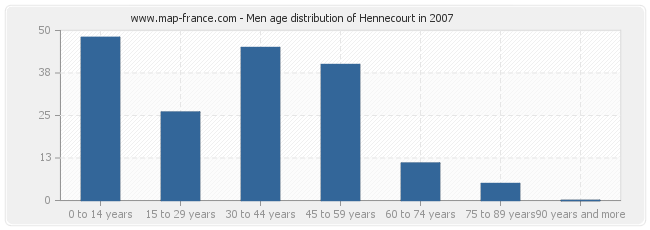 - Hennecourt men inhabitants from 15 to 29 years : 26